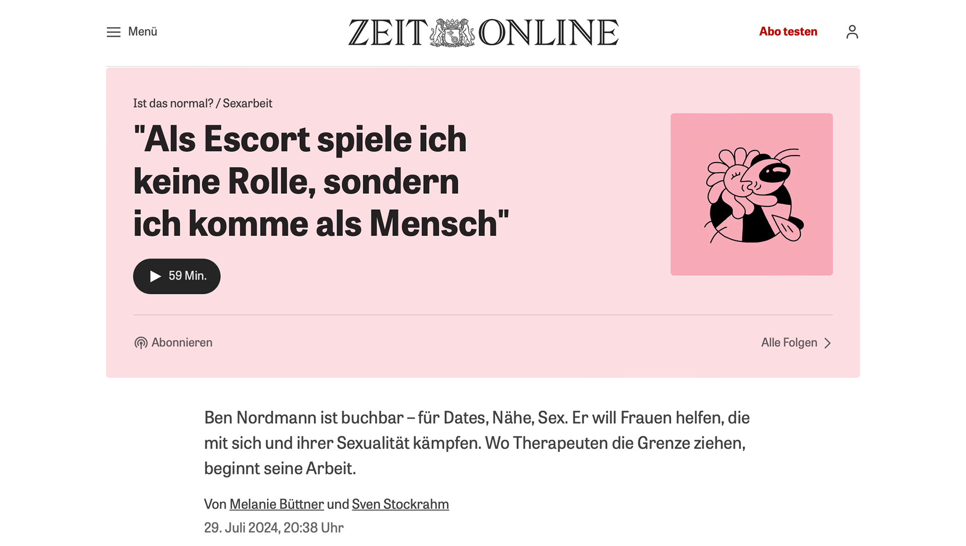 "Das Mutigste war die Anfrage zu stellen, denn danach lief alles entspannt und empathisch ab. Ich kann einfach jede Frau nur dazu ermutigen, mit diesem tollen Begleiter eine kleine Reise zu sich selbst zu unternehmen. Ich hätte nie gedacht, dass alles so leicht und entspannt ablaufen würde! Ben vermittelt ein warmes Gefühl vom ersten Augenblick und lässt alle Bereiche fließend ineinander gleiten, was als unverbindliches Kennenlern-Essen begonnen hat, endete mit der schönsten Erfahrung meines Lebens."