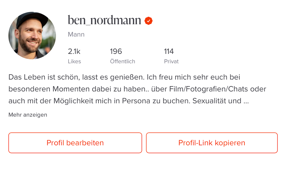 "The bravest thing was to send the request because after that everything was relaxed and empathetic. I can only encourage every woman to take a little journey to themselves with this great companion. I never thought that everything would be so easy and relaxed Ben conveys a warm feeling from the first moment and allows all areas to flow smoothly into one another. What started as a non-binding get-to-know-you meal ended with the most beautiful experience of my life."