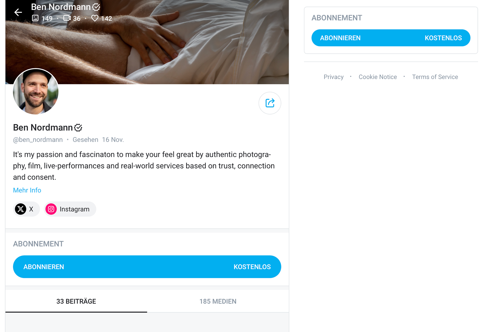 I’m Ben Nordmann, originally from Germany, born in 1989, and based in the Netherlands and Germany. I consider myself a straight cis-man, with a love for diverse humans and their way of loving and living. The fascination with the wonderful energies that can flow in connection-based sensuality, made me shape justnotbed. — I‘m practicing empowering sex work as well as film-/photography with a deep passion for creating supportive, joyful moments and inspiration.